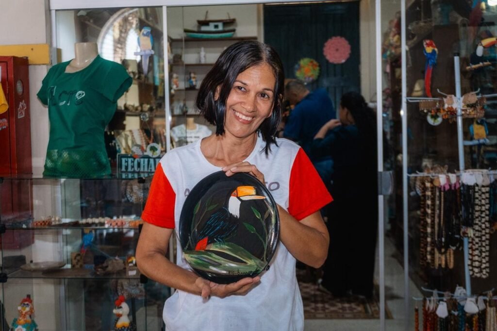 Versátil, a artesã atua com pintura em camisetas e vidros, biojoias, pratos, copos, ímãs e chaveiros e vende na loja Cor Amazônia, localizada no Novo Mercado Velho, em Rio Branco. Para esta edição da Fenacce, ela preparou um portfólio especial. “Vou levar os pratos e as biojoias, que são o nosso carro forte, sempre muito admiradas. Também pretendo desenvolver pintura em roupas e vou trabalhar com algodão para, futuramente, apresentar em feiras. É satisfatório participar dos eventos, pois além de aprender mais, ganhar experiência, tem o lado financeiro, que traz renda. É uma experiência maravilhosa”, destaca.
